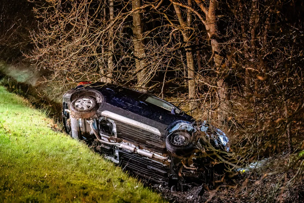 Dit voertuig botste eerst op zijn voorganger die met zijn auto in een slip geraakte om vervolgens achterstevoren tot stilstand te komen in de berm. De veroorzaker van het ongeval reed na de aanrijding nog tientallen meters door en botste daarna nog tegen een lantaarnpaal aan om vervolgens op zijn zijkant in een sloot tot stilstand te komen.