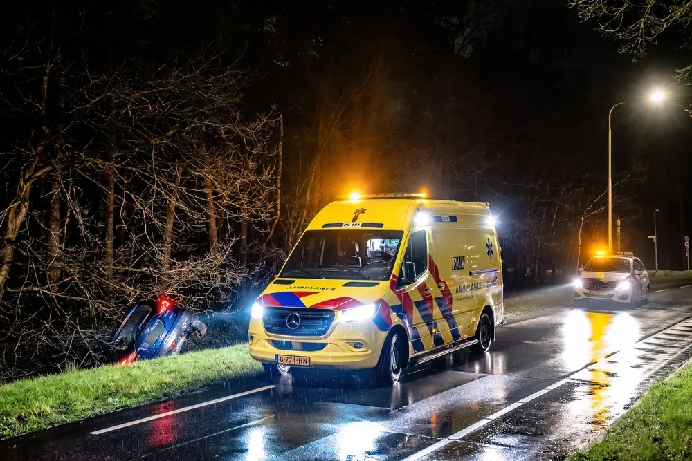 Een ambulance heeft de bestuurder van het voertuig wat in de sloot belandde onderzocht, vermoedelijk is de man onwel geworden. Na de medische controle heeft het ambulancepersoneel de man naar huis gebracht.