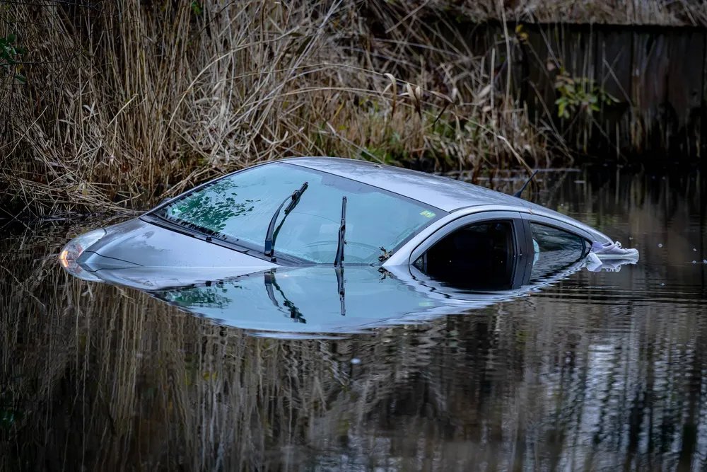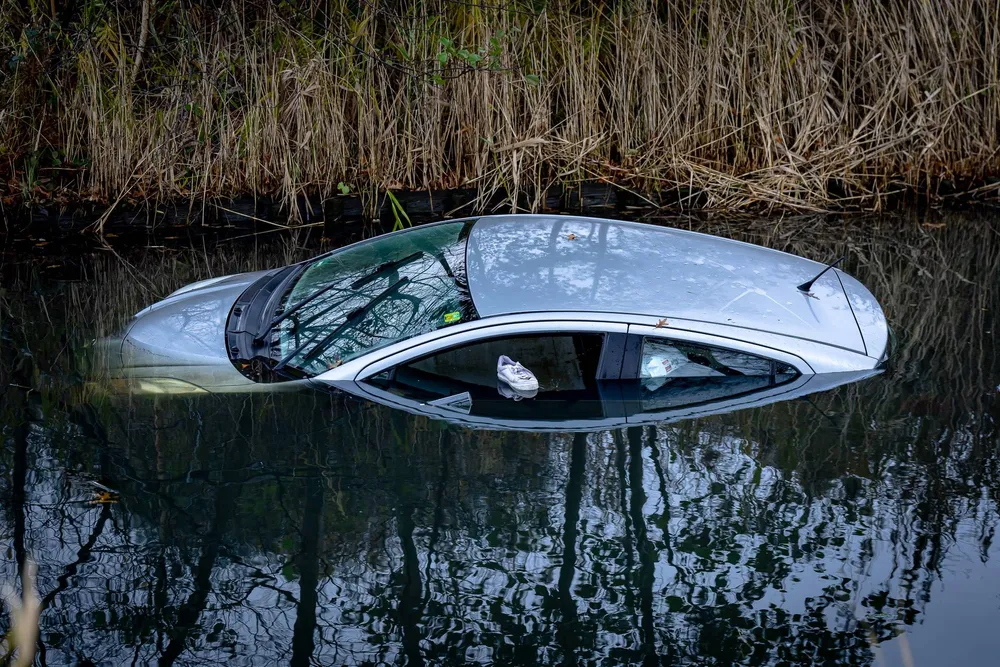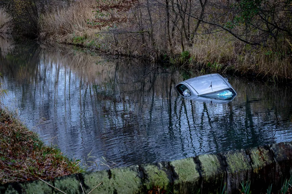 Een bergingsbedrijf is opgeroepen om de auto uit het water te takelen. De politie doet onderzoek naar de oorzaak van het incident.