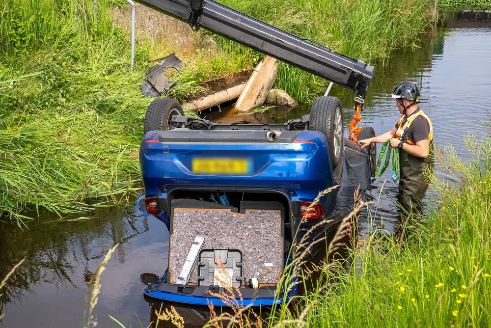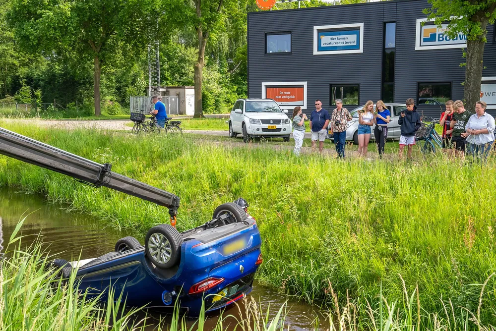 NIEUWKUIJK - Zondagmiddag omstreeks 15:10 uur raakte een auto te water op de hoek van de Spoorlaan met de Venbroekstraat in Nieuwkuijk.