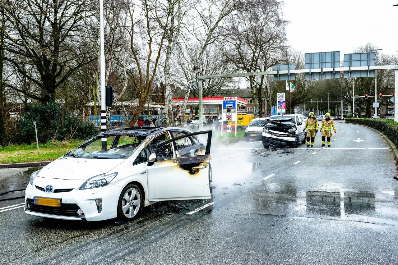Op oudjaarsdag rond 15:10 uur is een auto in brand gevlogen na een aanrijding op de kruising van de Ringbaan West en de Baroniebaan in Tilburg.