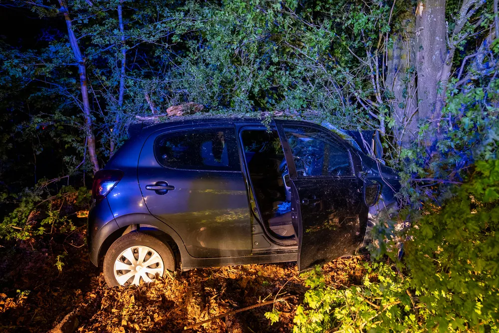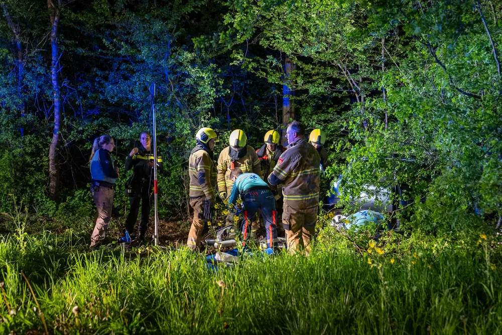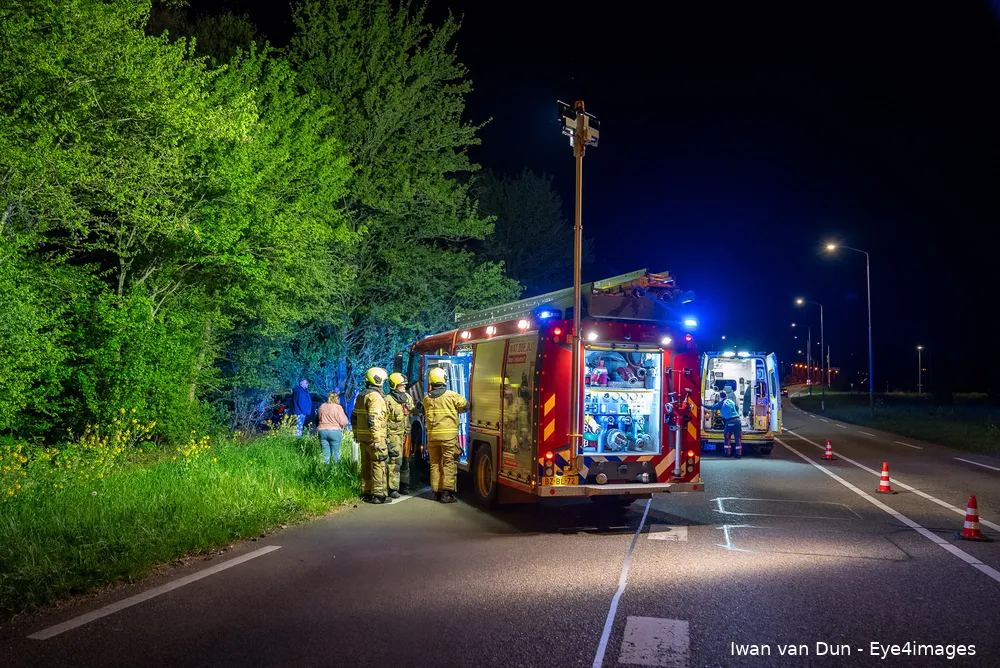 De weg was na het ongeval voor een deel afgesloten. Van de auto bleef weinig over. Deze is afgevoerd door een berger.