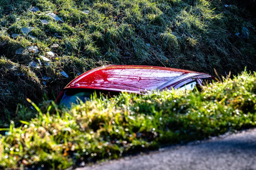 De bestuurder verloor door een nog onbekende oorzaak de controle over het stuur en raakte van de weg, waarna hij in de vaart belandde.