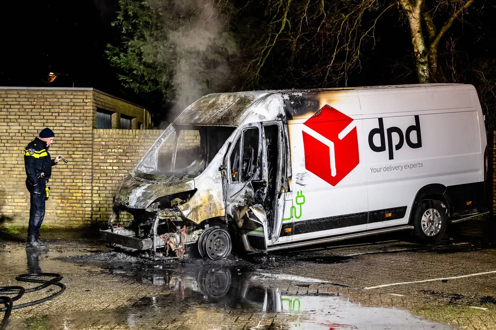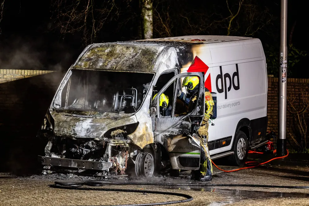 Het betrof een elektrische bestelbus die aan de voorzijde volledig uitbrandde.
