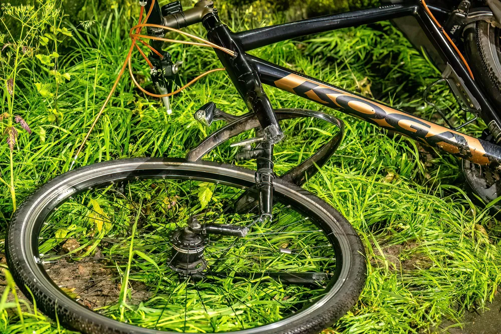 De fiets van de fietser is door de aanrijding zwaar beschadigd. De voorvork was zelfs doorbroken. De auto had ook schade aan de voorruit.