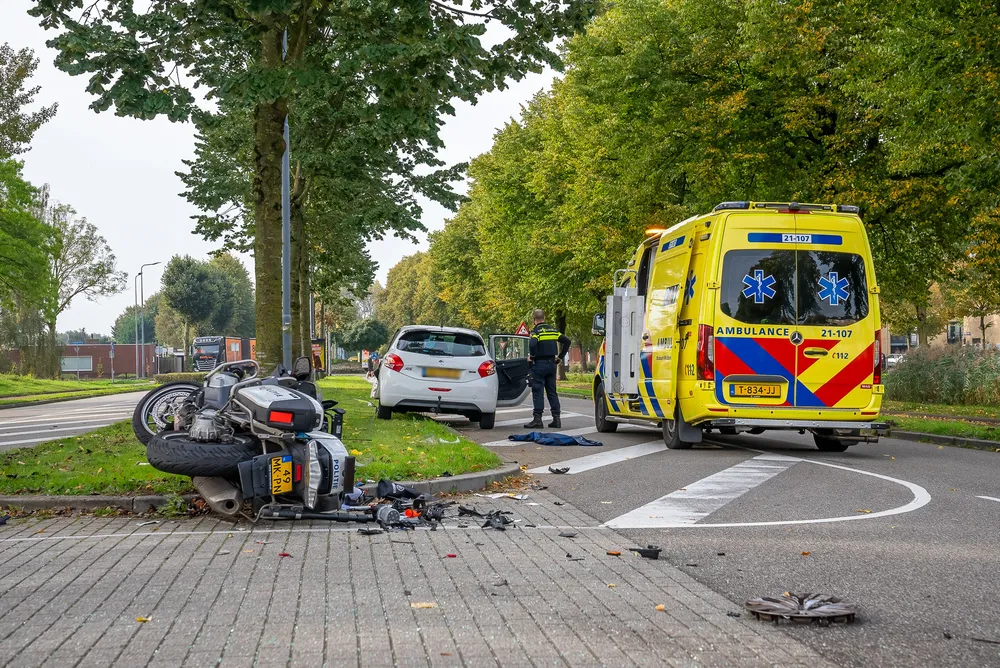 De motoragent raakte daarbij gewond, hij is met onbekende verwondingen overgebracht naar het ziekenhuis. De automobilist raakte in de woorden van de politie 'oppervlakkig gewond'. De motoragent was samen met andere politie-eenheden onderweg naar een urgente melding. Vermoedelijk ging het mis toen de motoragent een auto inhaalde op de Helftheuvelweg. Door een nog onbekende reden raakten de motor en de auto elkaar.
