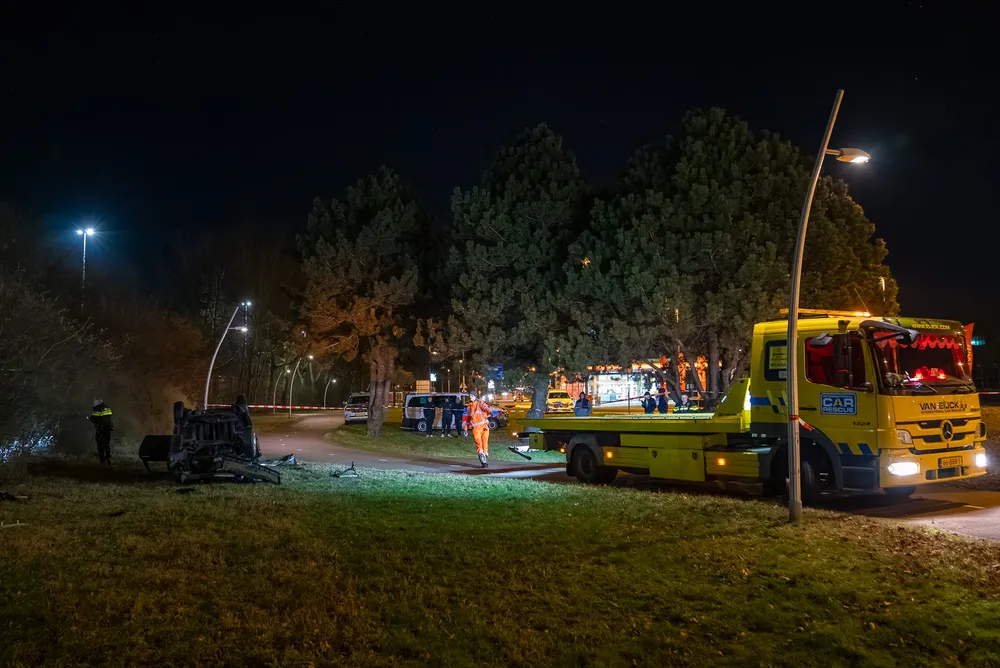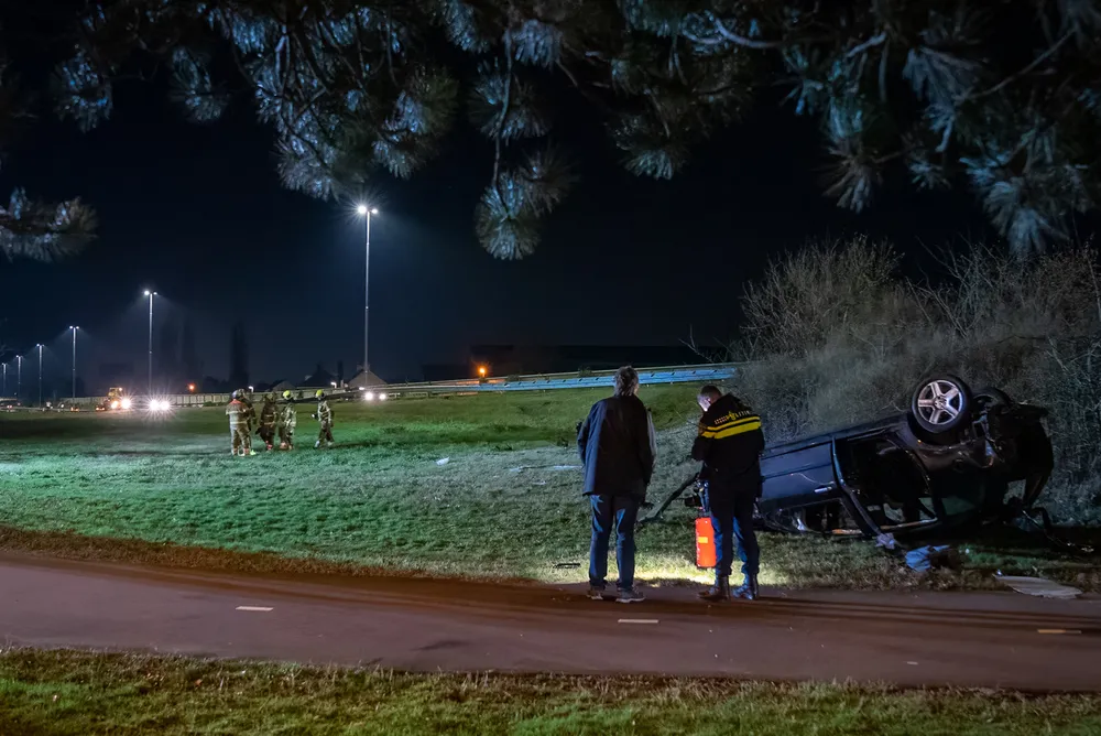 Het voertuig sloeg zes maal over de kop voordat het tot stilstand kwam. De twee mannen die in de auto zaten raakten gewond en zijn naar het ziekenhuis gebracht. Voor het ongeval werd ook een traumahelikopter opgeroepen, deze kwam uiteindelijk niet meer ter plaatse.