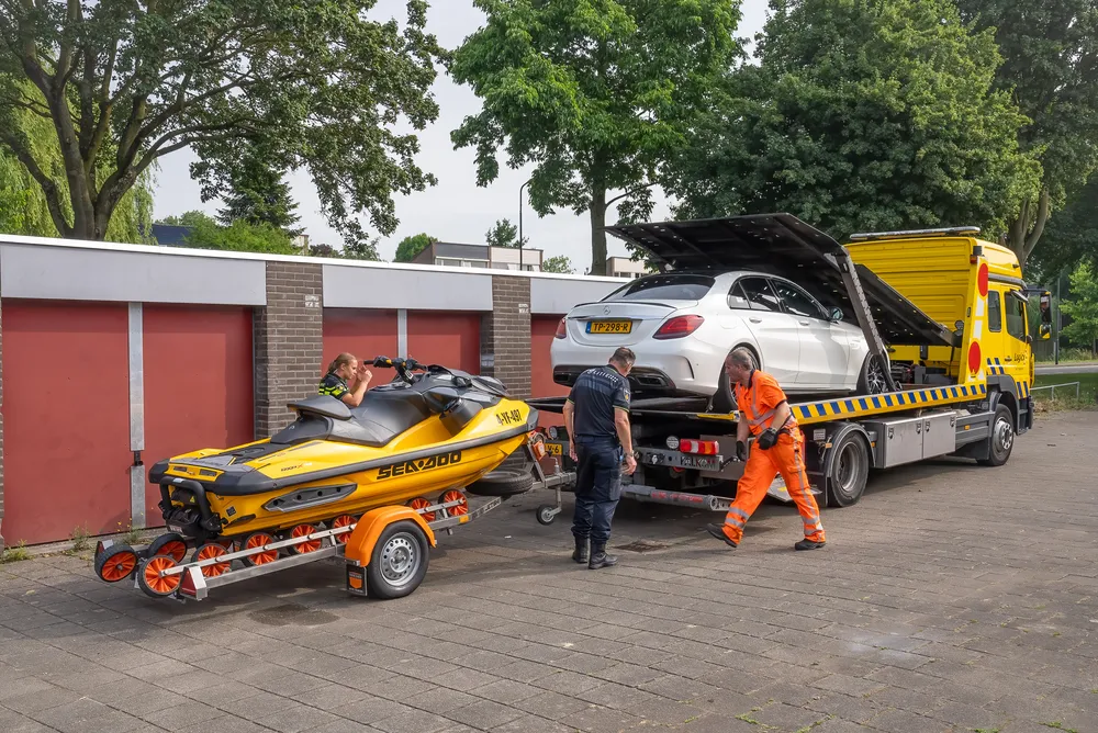 De Saxofoon, een straat in de wijk Noord, is de politie niet veel later ook binnengevallen. Daar hield de politie een persoon aan en zijn een dure Mercedes en een waterscooter in beslag genomen. In Oss werd de vondst gedaan bij een woonwagenkamp aan de Ritchiestraat. Hier is ook de Explosieven Opruimingsdienst Defensie (EOD), de brandweer en een ambulance aanwezig. Het is nog onduidelijk of er, net als bij de flat in Den Bosch, explosiegevaar is.