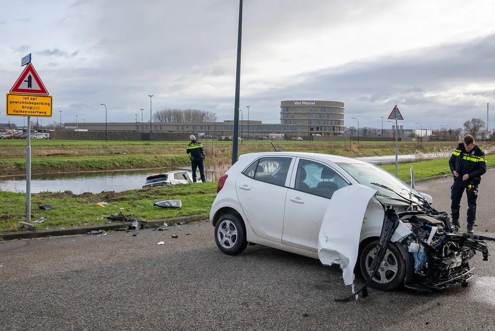 Het ongeval gebeurde op de kruising van de Weteringweg en De Kroonweg in Waalwijk. Beide voertuigen raakten zwaar beschadigd bij het ongeval. Een van de voertuigen belandde in het water van een naastgelegen water. Beide bestuurders, een man en een jonge dame, zijn met onbekende verwondingen naar het ziekenhuis overgebracht. Een bergingsbedrijf gaat zorg dragen dat beide voertuigen worden getakeld en afgevoerd.