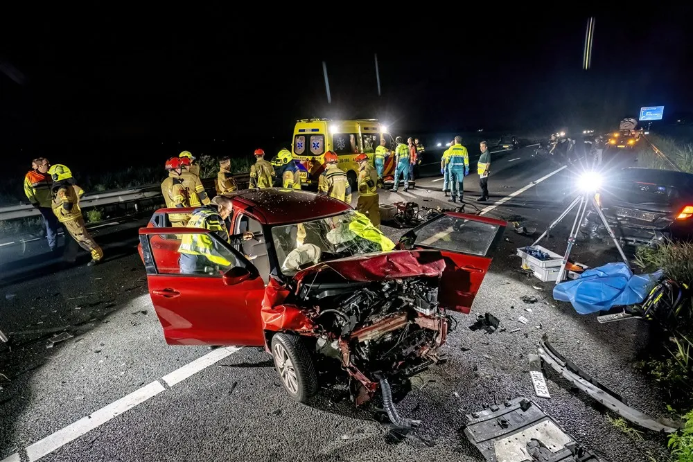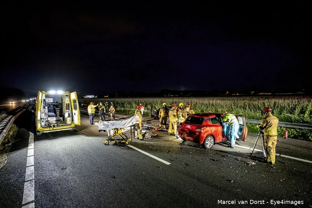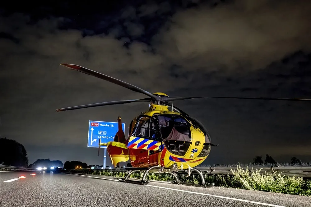 Naast ambulances, politie en brandweer landde er ook een traumahelikopter op de snelweg.