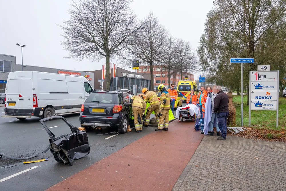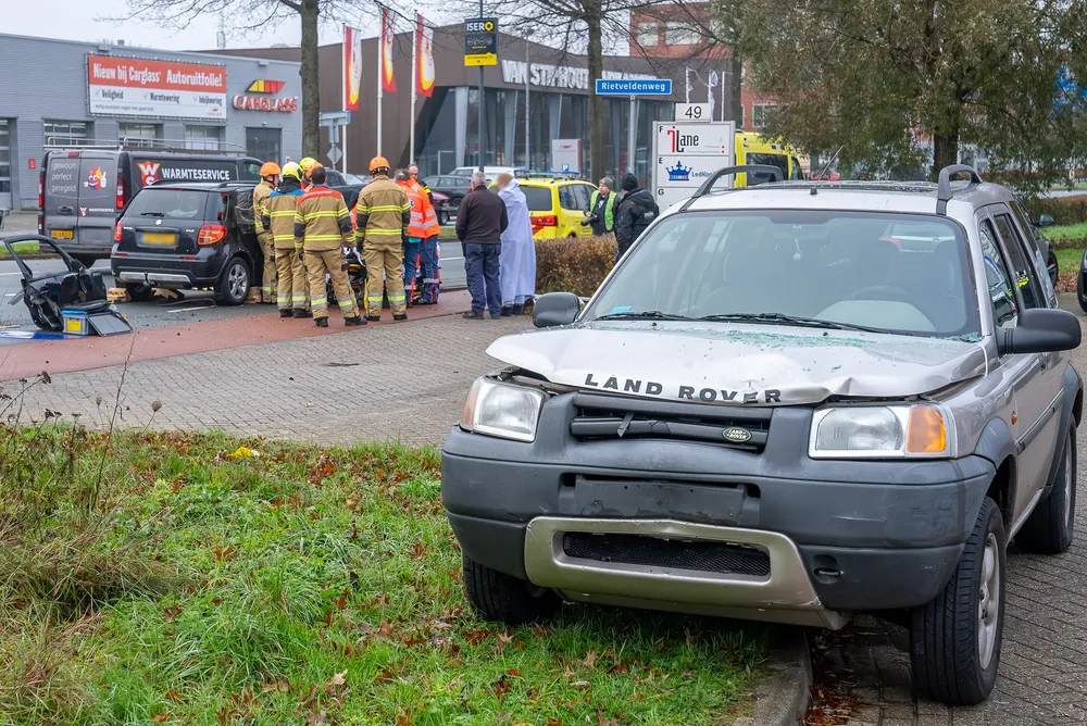 Op de kruising van de Moeskampweg met de Rietveldenweg botste een Land Rover tegen de auto, die net het kruispunt op reed. Het slachtoffer zat als bijrijder in de auto. De zwaargewonde man moest door de brandweer uit de auto worden bevrijd. Brandweerlieden verwijderden daarvoor het voorportier aan de bijrijderskant. Daarna is het slachtoffer met spoed overgebracht naar het ziekenhuis. De bestuurders van beide wagens kwamen met de schrik vrij.