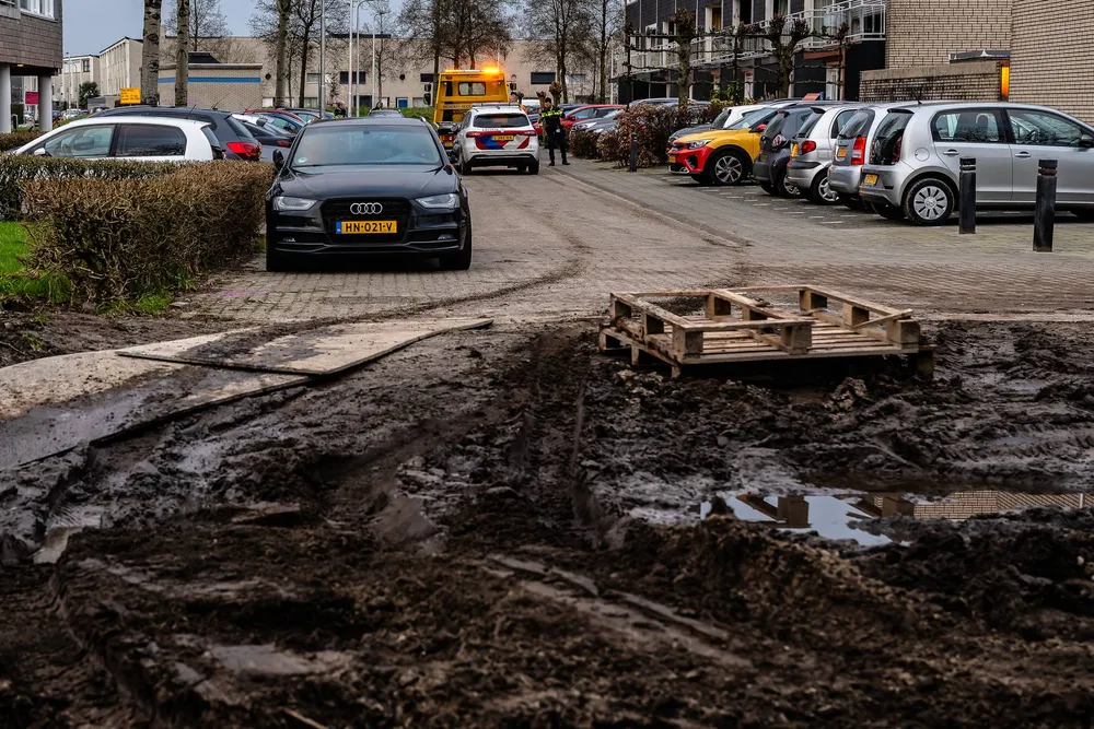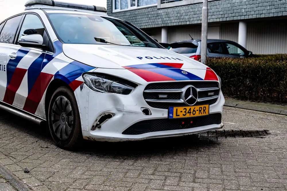 Tijdens de achtervolging raakte een politieauto beschadigd in de Olststraat. Door een grote olielekkage kon het voertuig niet meer verder rijden en moest het door een bergingsbedrijf worden getakeld en afgevoerd.