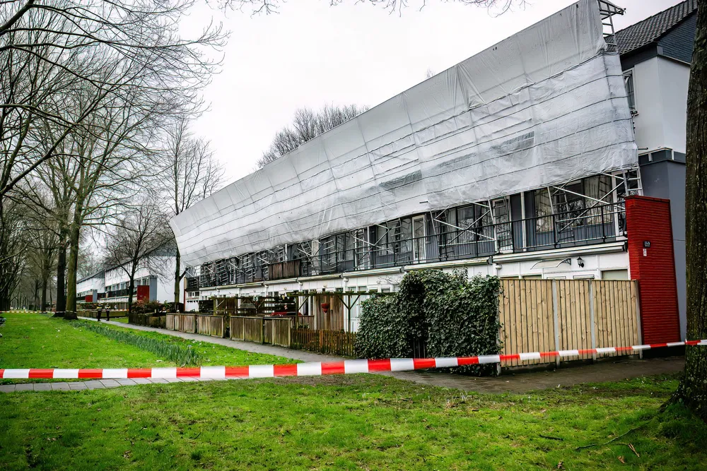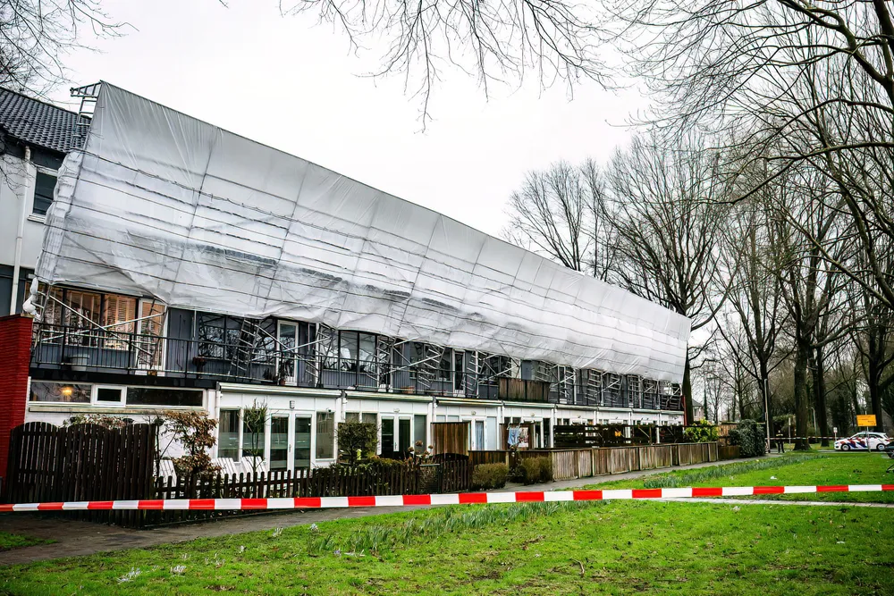 De bewoners van de getroffen woningen moesten uit veiligheidsoverwegingen in hun woningen blijven en mochten niet in de buurt van de ramen komen.
