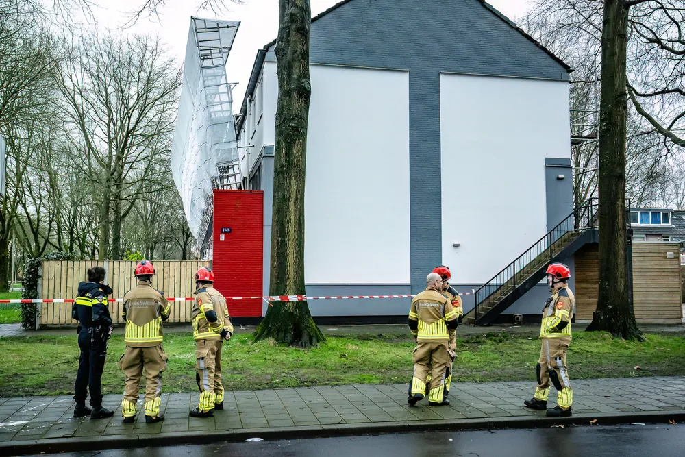 Ter plaatse bleek dat een meterslange steiger, die langs de woningen was geplaatst voor schilderwerkzaamheden in opdracht van WonenBreburg, door de harde wind was losgekomen en dreigde om te vallen. De steiger, die normaliter stevig verankerd zou moeten zijn, was door de windkracht gekanteld en leunde nu tegen de gevel en balustrade van de woningen.