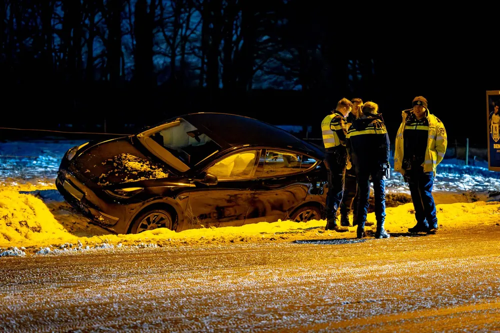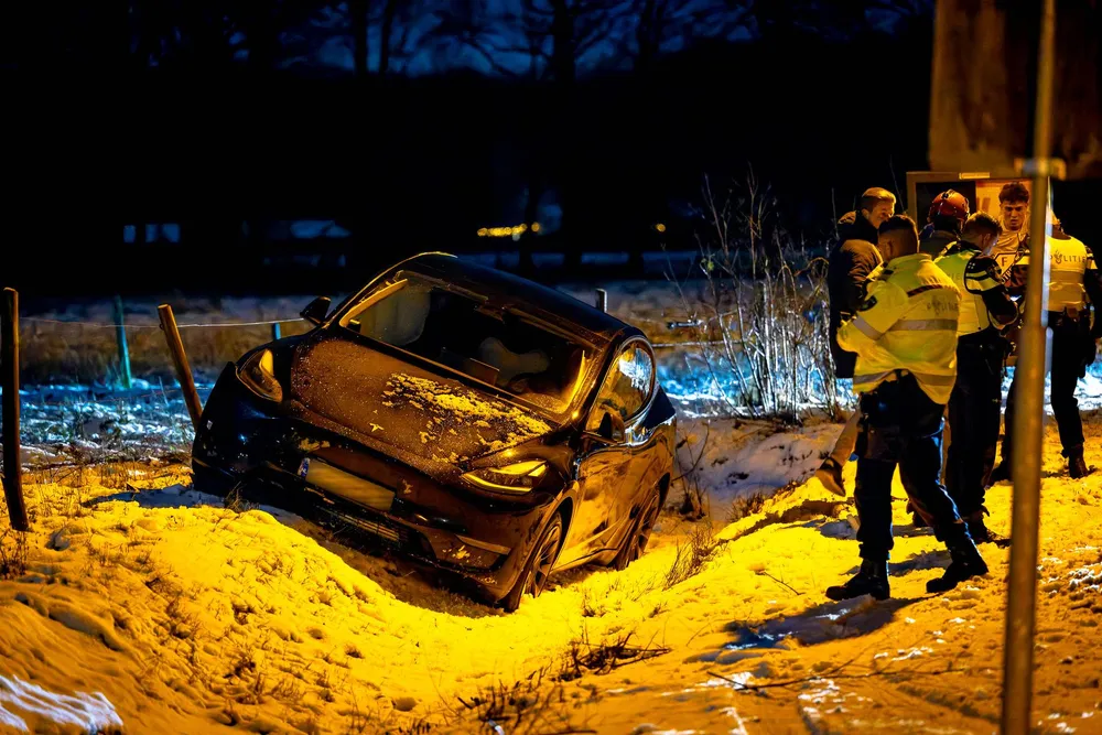 Door de slippartij raakte de bestuurder niet gewond. De auto liep wel schade op. Een bergingsbedrijf zal de Tesla uit de greppel lieren en vervolgens afvoeren.