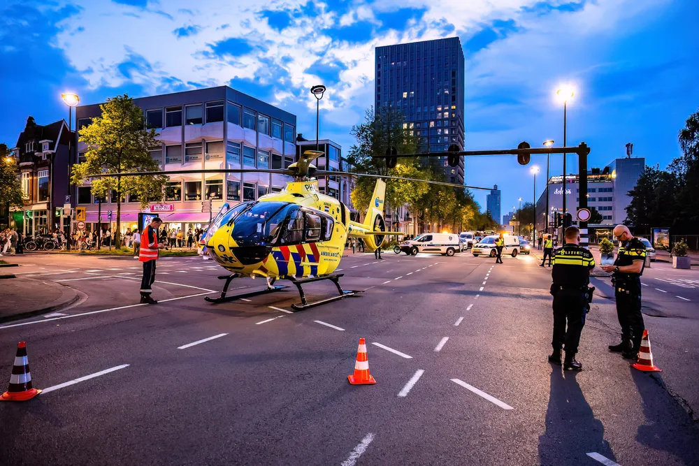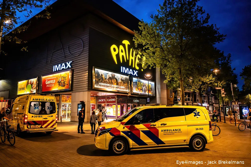De helikopter landde rond 21.15 uur op de kruising van de Spoorlaan en de Heuvelring, na een melding van een medisch spoedgeval in Pathé bioscoop aan het Pieter Vreedeplein.
