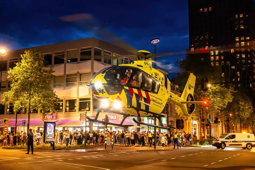 Zodra de helikopter landde, werd het gebied door de politie afgezet. Meerdere ambulances kwamen ter plaatse om het slachtoffer te verzorgen.