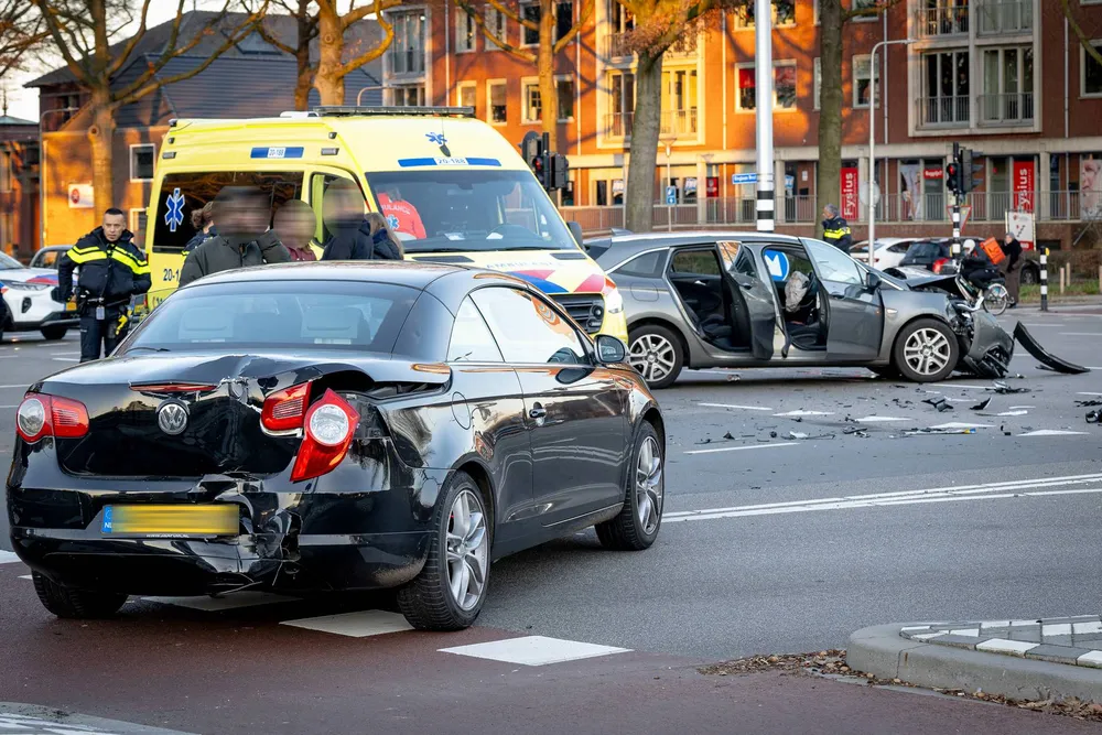 TILBURG - Bij een aanrijding tussen twee voertuigen op de kruising van de Ringbaan West en de Wandelboslaan in Tilburg zijn vrijdagmiddag twee personen gewond geraakt.