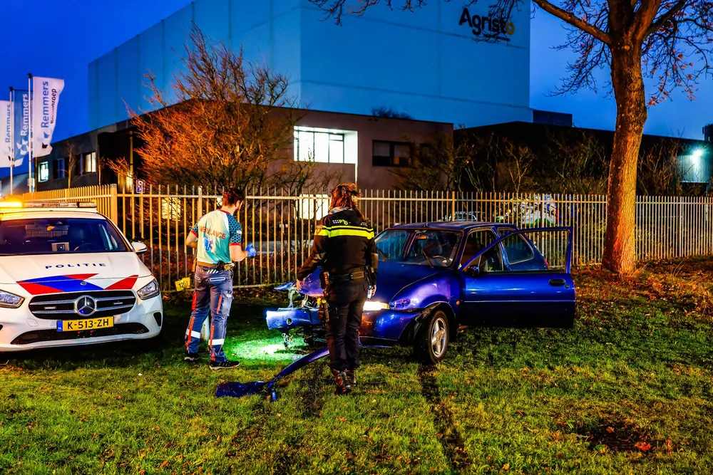 Twee voertuigen botsten met elkaar, waarbij een van de auto’s, met daarin twee vrouwen verkleed als zwarte piet, in de berm terechtkwam.
