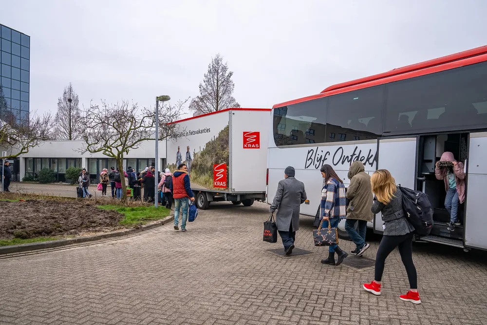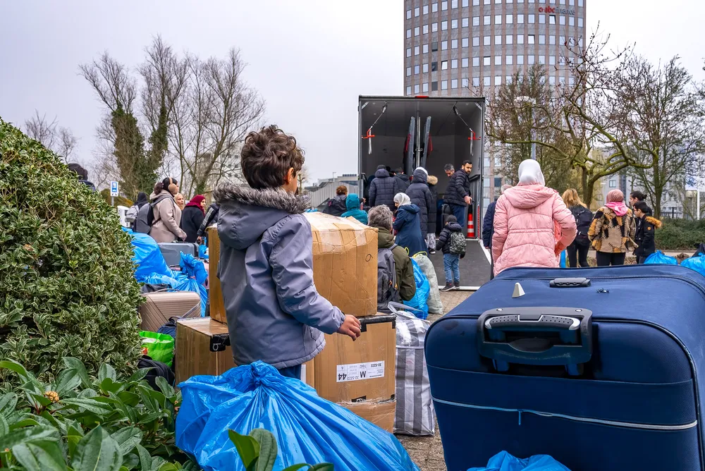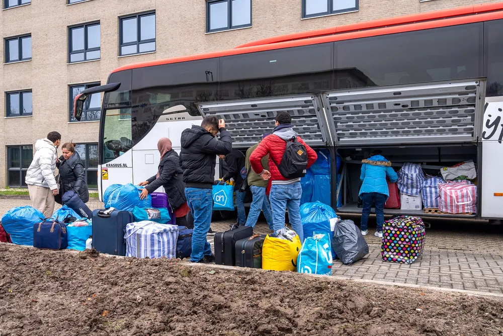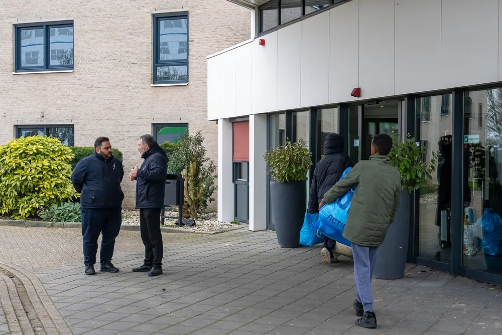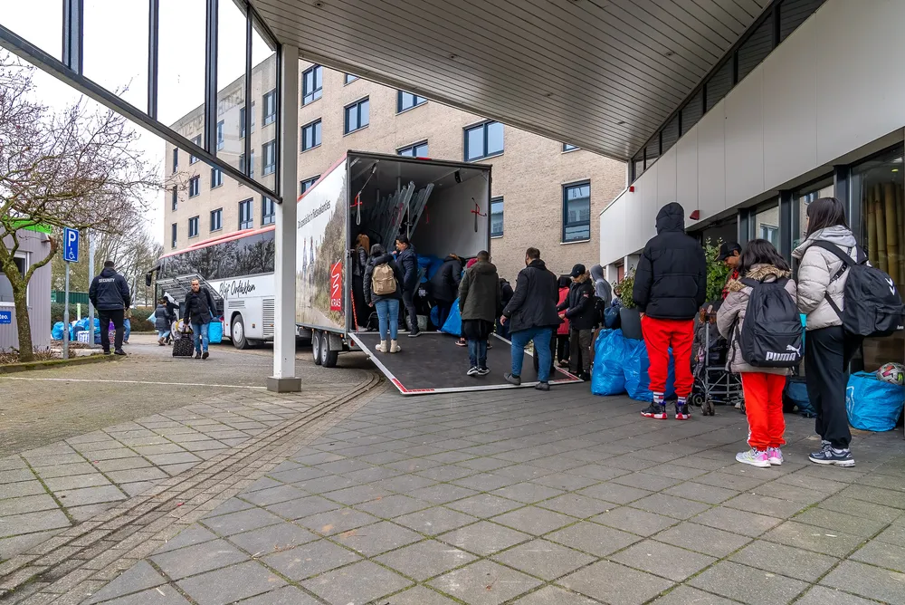 DEN BOSCH - 250 asielzoekers verhuisden vandaag van de noodopvang bij het Autotron in Rosmalen naar het voormalige Mövenpick Hotel Den Bosch.