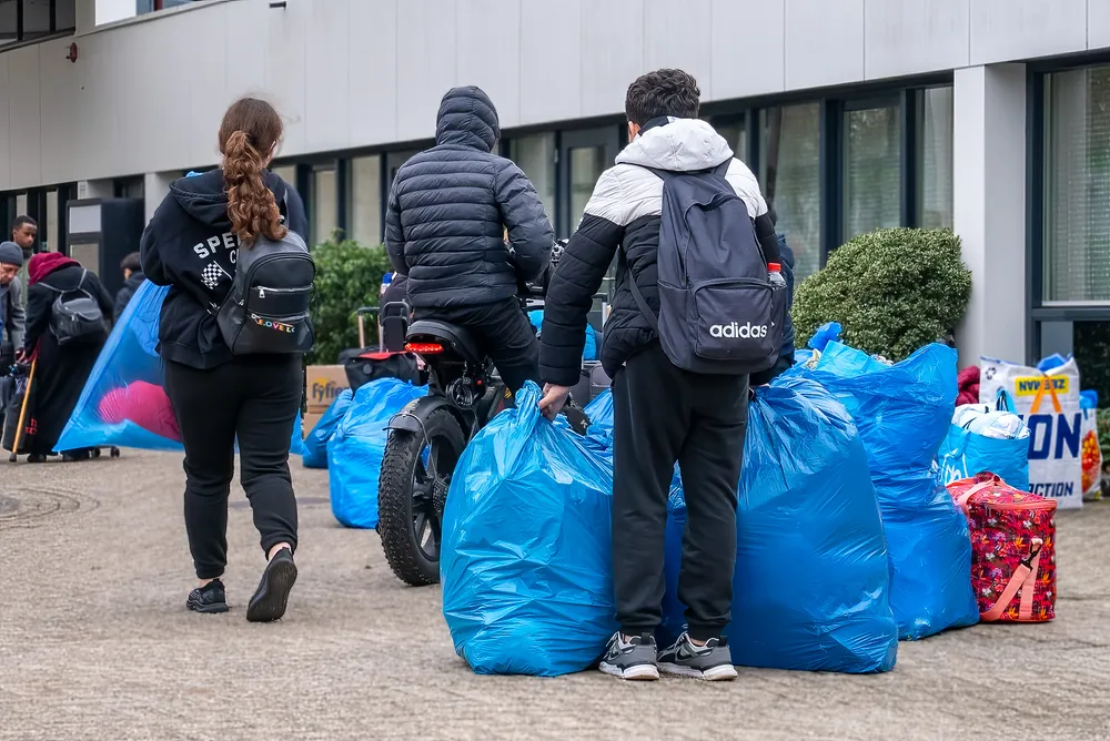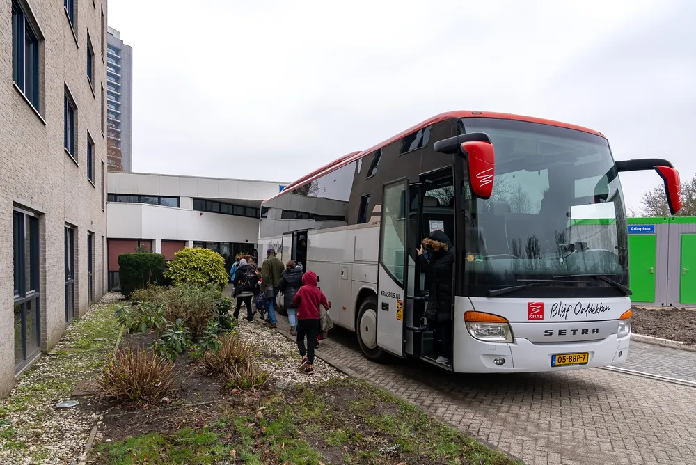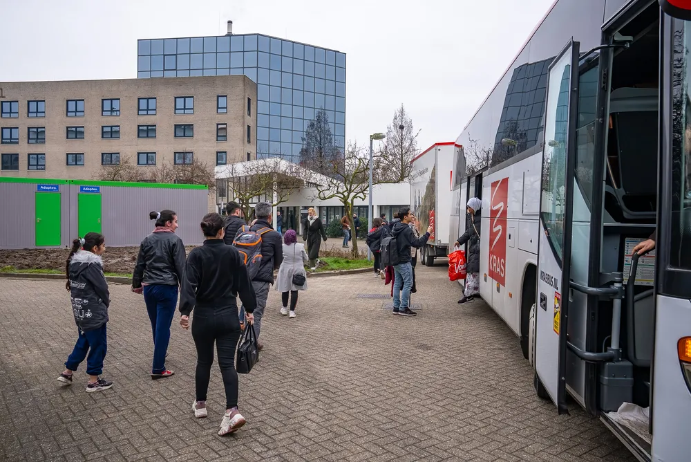Bolderkarren vol met tassen en koffers worden over het terrein gereden, vaders en moeders sjouwen met hun persoonlijke bezittingen en stellen hun kinderen gerust. De Turkse Veysel is blij dat hij dadelijk een wc en douche op de kamer heeft in tegenstelling tot het gezamenlijke sanitair op de noodopvang.