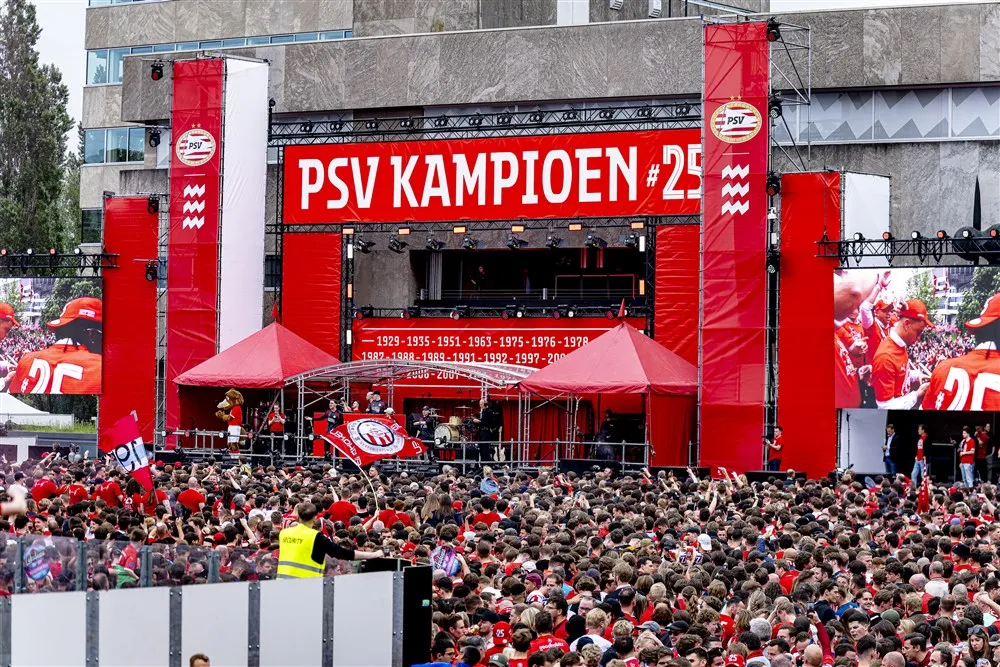 Na het behalen van het 25e kampioenschap waarin de Eindhovenaren zondag met 4-2 van Sparta wisten te winnen werd al een groot volksfeest gevierd. Vandaag werd dat nog eens goed overgedaan. Tienduizenden supporters kwamen naar Eindhoven om hun ploeg te huldigen en luidkeels toe te zingen en juichen.