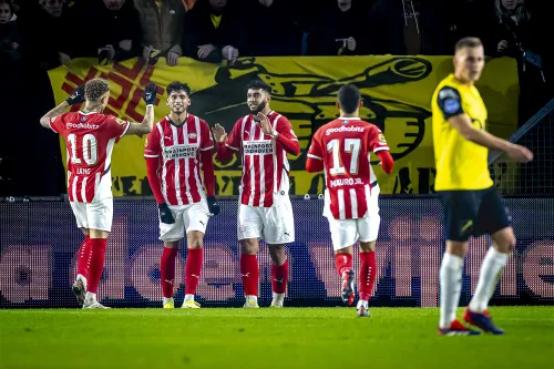 Even later was het diezelfde Pepi die de 0-1 aantekende na een fraaie pass van Ismael Saibari en de bal achter doelman Bielica schoof. Aan de treffer zat een luchtje van buitenspel, maar de VAR en scheidsrechter Van der Eijk keurden deze wel goed. Ook de tweede treffer van PSV volgde snel. Deze keer was de aangever van de 0-1, zelf trefzeker. Saibari verdubbelde, na een hakje van Pepi, met een lage schuiver de score: 0-2.
