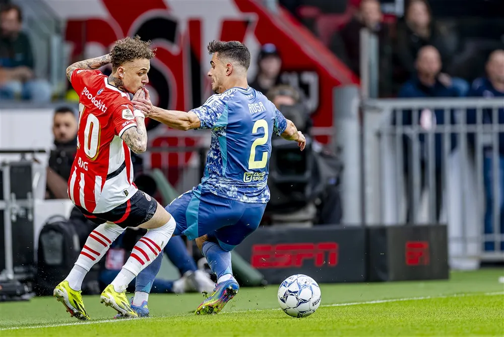 Door slim positiespel en backs Lucas Rosa en Jorrel Hato die het middenveld in schoven, combineerde Ajax zich eenvoudig naar voren. Dat legde een zwakte van PSV bloot: onder Bosz vergt druk zetten precieze timing en discipline, maar de PSV’ers waren vaak te laat. Daardoor kreeg Ajax voor rust via Kenneth Taylor en Mika Godts al gevaarlijke schietkansen.