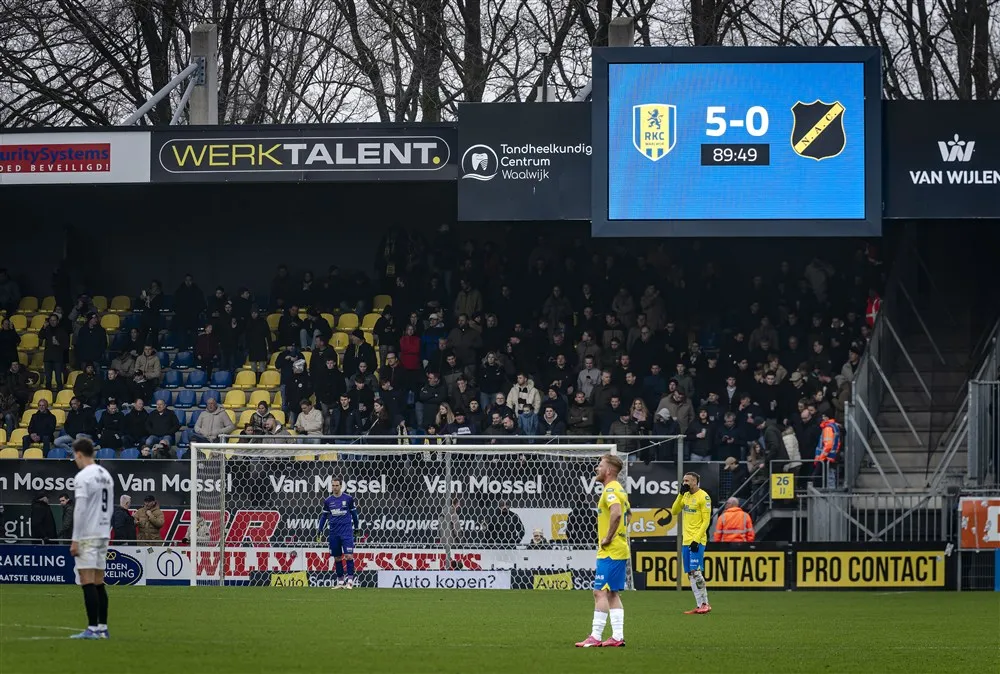 WAALWIJK - RKC heeft in eigen huis met 5-0 gewonnen van NAC. Het is voor de Waalwijkers de grootste eredivisie zege ooit. NAC had weinig te zeggen in het uitverkochte Mandemakers Stadion. Met goals van Richonell Margaret, Yassin Oukili, Oskar Zawada (2 maal) en Chris Lokesa bleef de stand steken op 5-0.