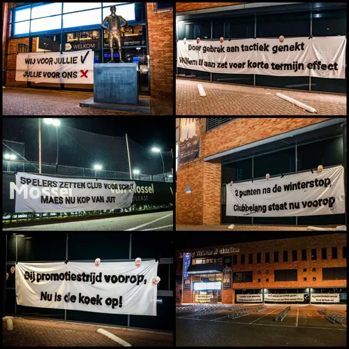 TILBURG - Bij Willem II is de crisis verder geëscaleerd toen een groep boze supporters laat op dinsdagavond spandoeken bij het stadion ophing. De boodschap op deze doeken was glashelder: trainer Peter Maes moet vertrekken, volgens hen. Dit heeft echter verdeelde reacties veroorzaakt onder de supporters van Willem II.